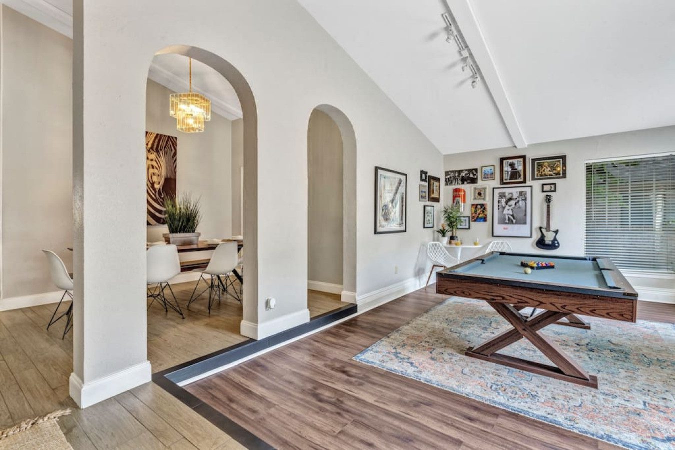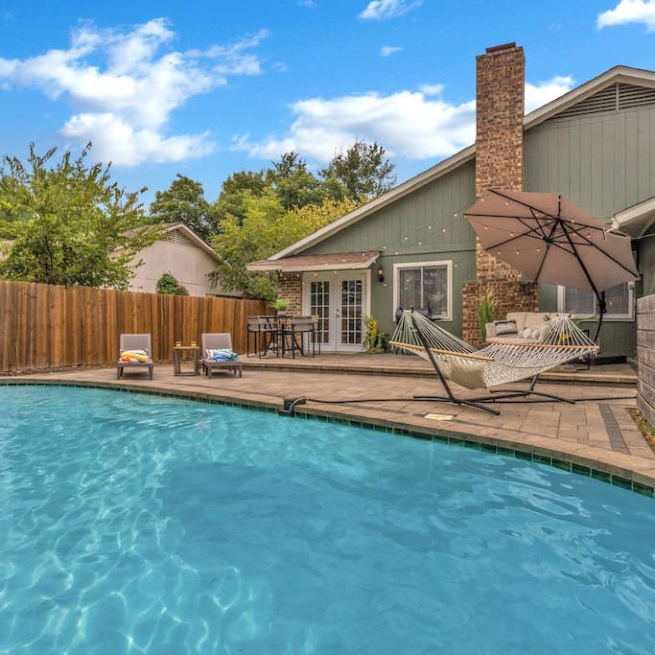 Welcome to our luxurious 1-story pool house in Richardson! This 2,000 SF, professional designed retreat offers the perfect balance of relaxation and entertainment. Enjoy a refreshing swim in the pool, challenge friends to Jumbo Jenga, fire up the grill for a delicious barbecue on the patio, and a fire pit for marshmallow wars. This is your headquarters for non-stop fun and outdoor shenanigans!. Unwind, have fun, and make lasting memories in this exceptional vacation home.