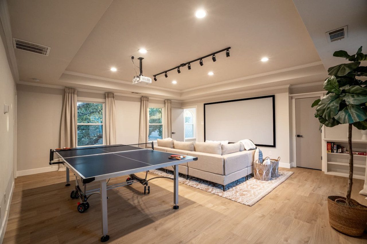 A spacious masterpiece that seamlessly blends comfort and sleek aesthetics. As you venture outdoors, a sizzling grill awaits your culinary adventures, while the fire pit sets the stage for intimate gatherings under the stars. Come into the game room where you can kick back and relax and watch a movie or compete in a friendly ping pong match. With curated furnishings and thoughtful design, this home offers the perfect balance of sophistication and leisure.
