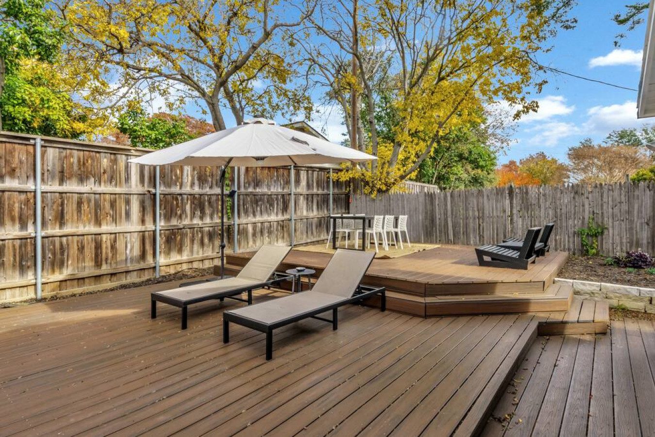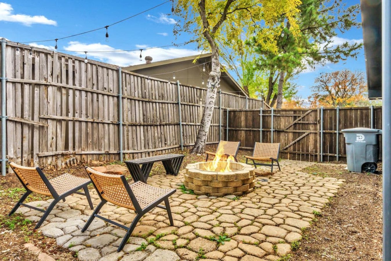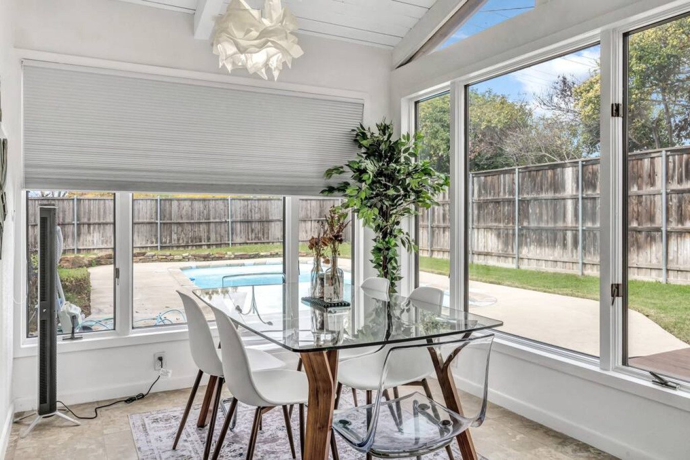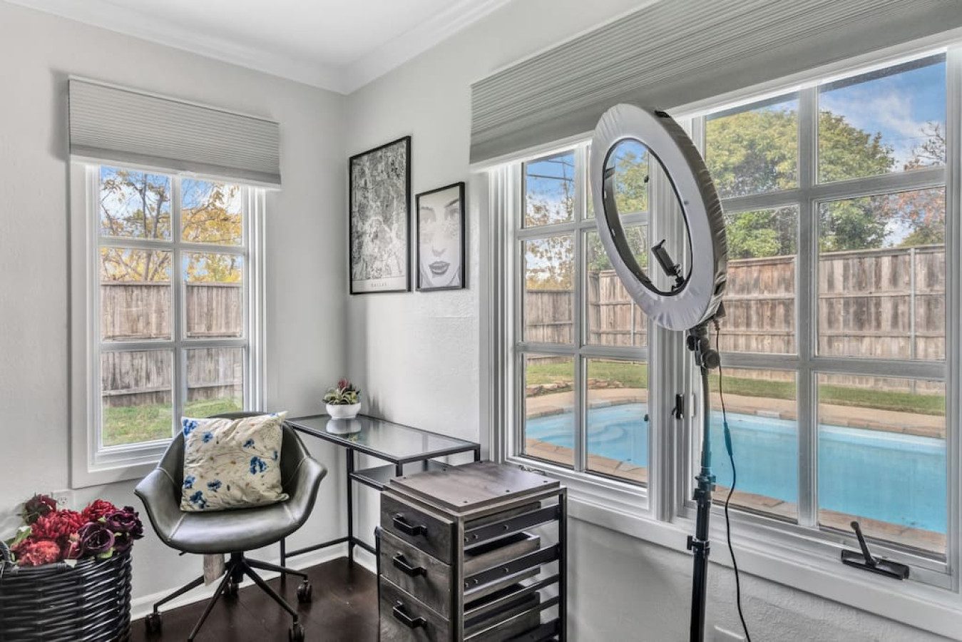 There’s central heat/cooling, a charcoal grill, firepit and a pool for the Texas heat.