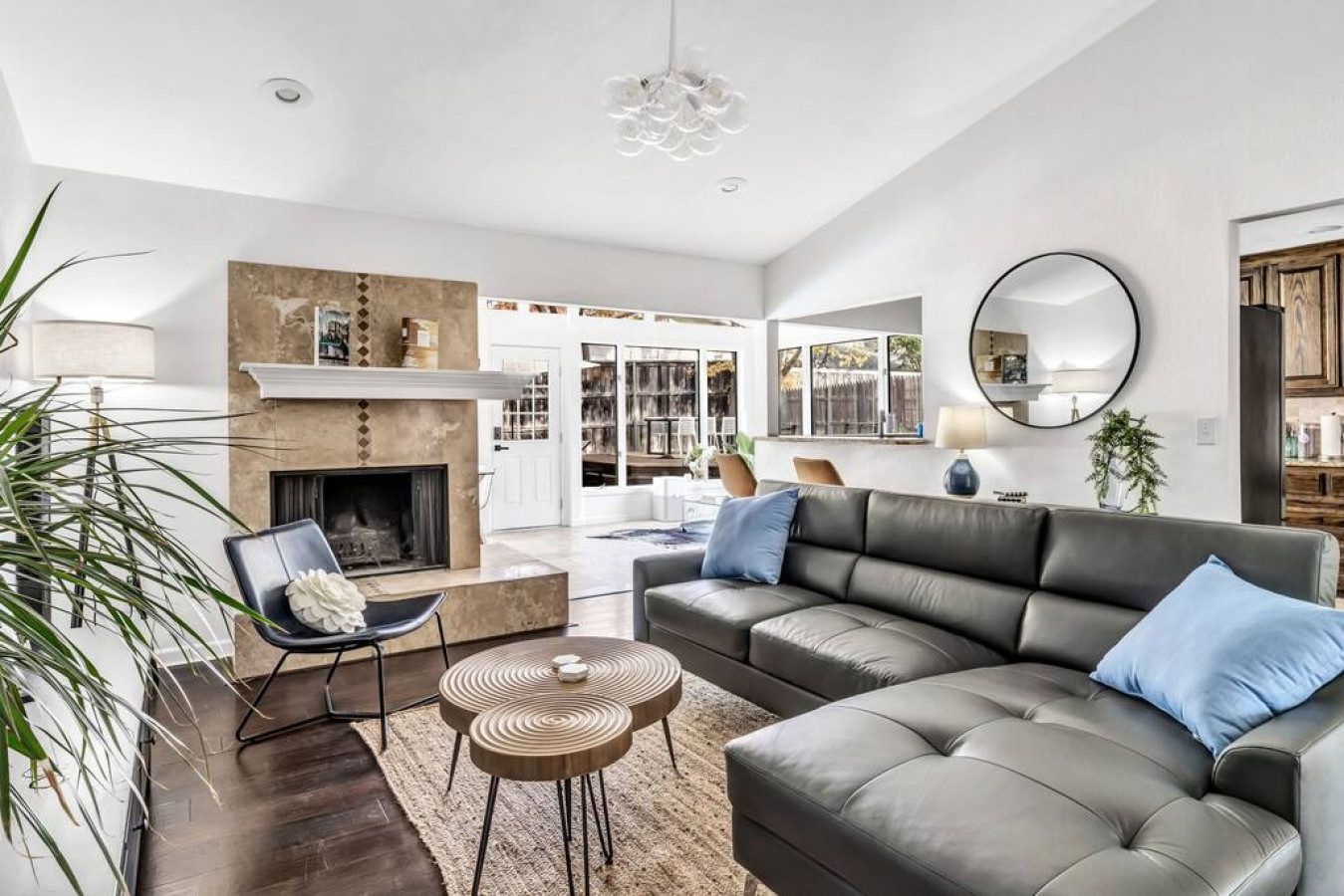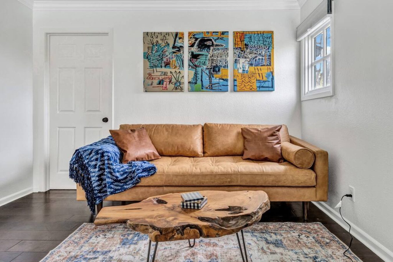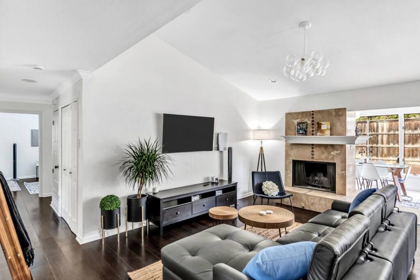 Living Areas: Large L-shaped sofa, 55″ smart TV, gaming console, and fast 1GIG fiber internet.