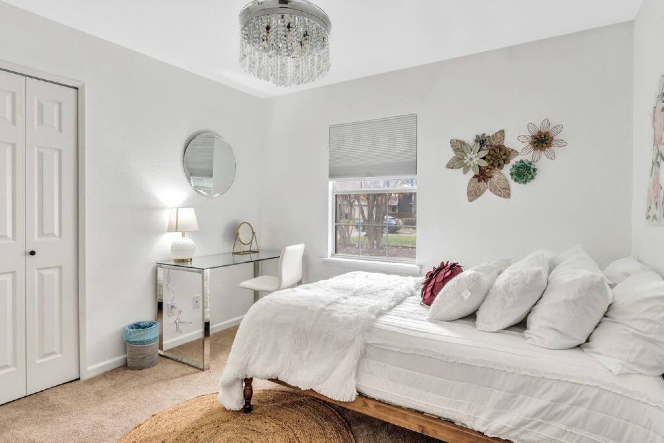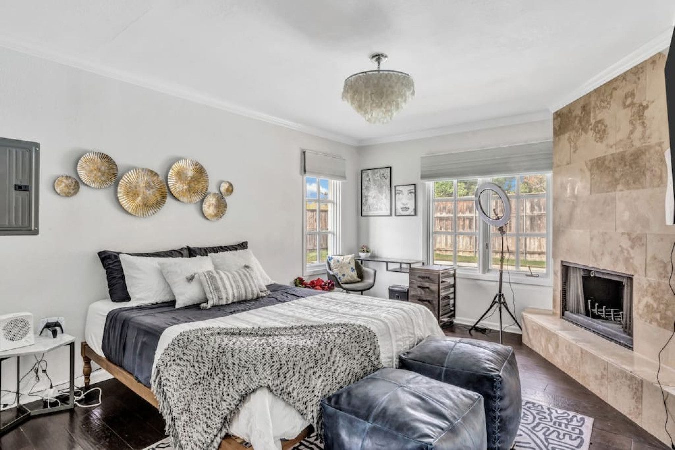 Bedrooms: Master bedroom with Purple mattress, walk-in closet, smart tv, gaming console and private bath.