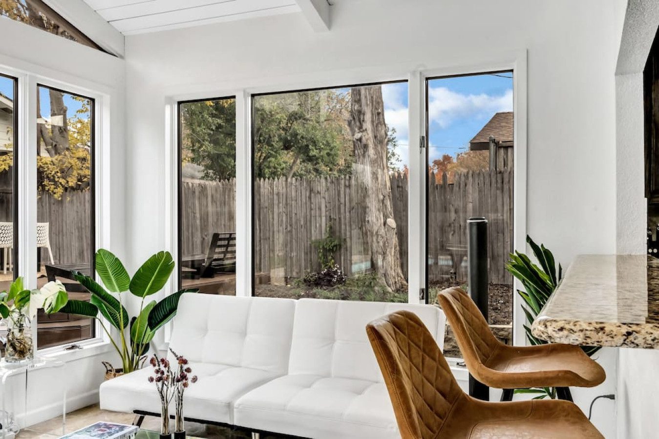 This home features 6 beds (2 Queens, 2 Fulls, 1 Futon, 1 Air Mattress) and offers a private pool, outdoor fire pit, sunroom, and patio deck with loungers and dining space. Ideal for families, groups, or business travelers, the home includes: