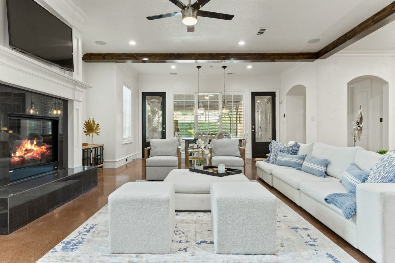 ★ Modern inspired executive 2 story, 4200 SF home that is minutes away from all of Fort Worth’s hot spots with 5 bedroom, 3.5 bath, 6 BDs, 1 comfy couch. A perfect staycation to explore what Fort Worth has to offer.