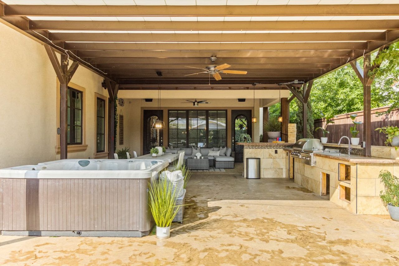 – Hot tub, and Kitchen in the backyard